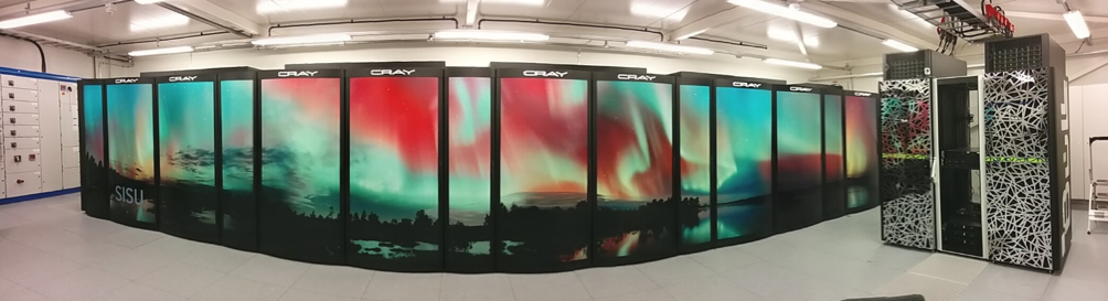 CSC’s computing platforms include systems for high-performance and high-throughput computing as well as cloud computing. Currently, our Cray XC40 supercomputer Sisu is the most powerful system in Finland and one of the most powerful in Northern Europe. Sisu is targeted for massively parallel applications that can effectively run on hundreds to thousands of compute cores in parallel. For serial and small parallel workloads there is a cluster system called Taito, an HP Apollo SL230a/SL230s Supercluster. There are also several large-memory (1.5 TB) nodes for jobs requiring a large amount of memory as well as a set of Nvidia GPUs: 104 latest-generation P100 cards and some tens of earlier generation (K80, K40) GPUs. The cloud service cPouta is a commodity ("plain-vanilla") cloud resembling a user experience similar to commercial IaaS clouds, with a difference of being based on high-performance hardware, as it is provisioned from the Taito system.